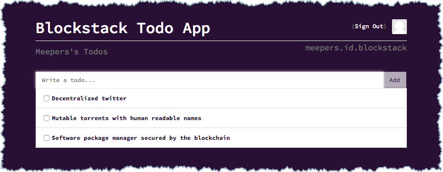 Now, trying adding a few items to the todo list. For example, try making a list of applications you want to see built on top of Blockstack: