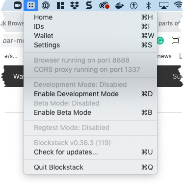 - Hover over the Blockstack icon in your menu bar.