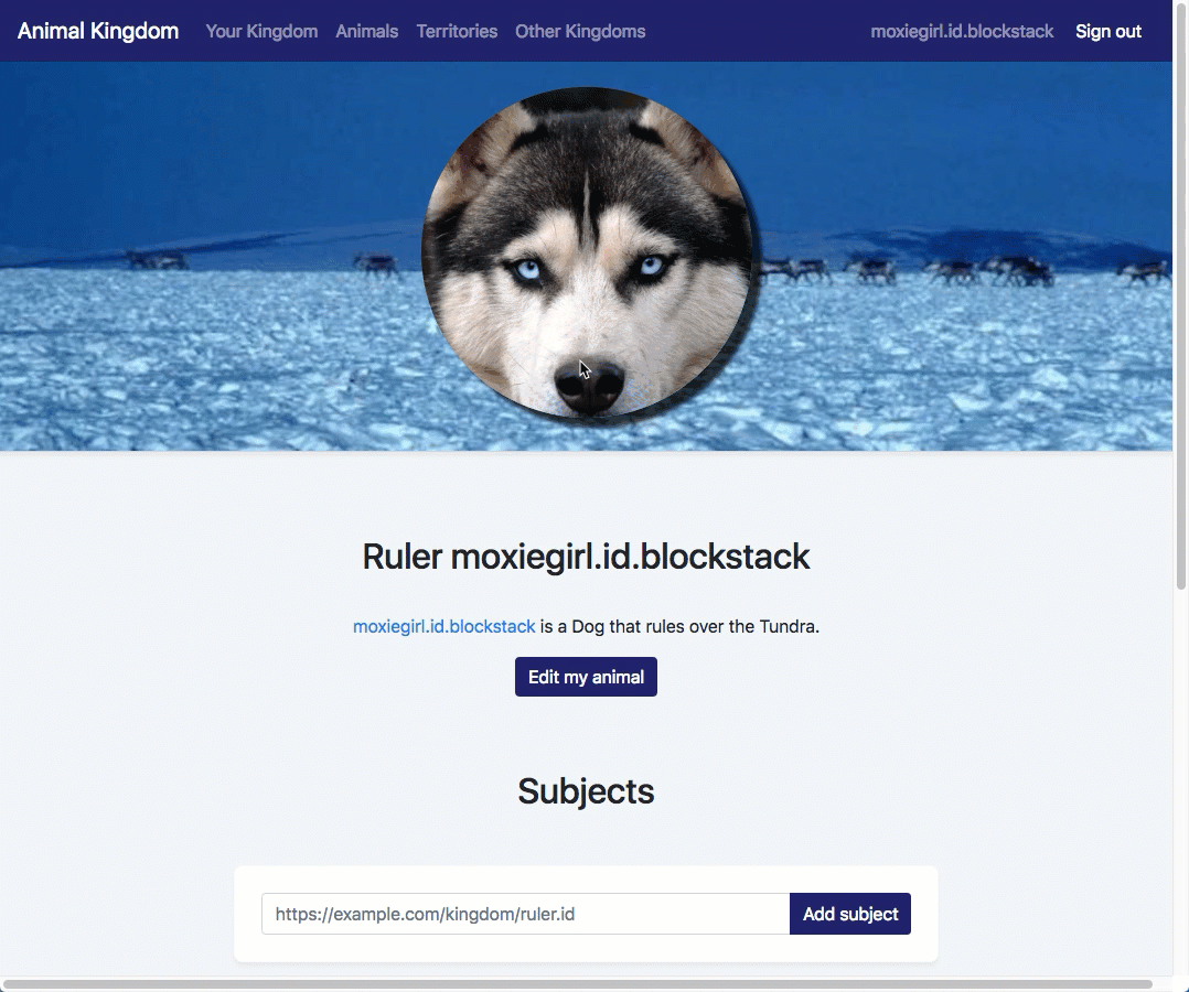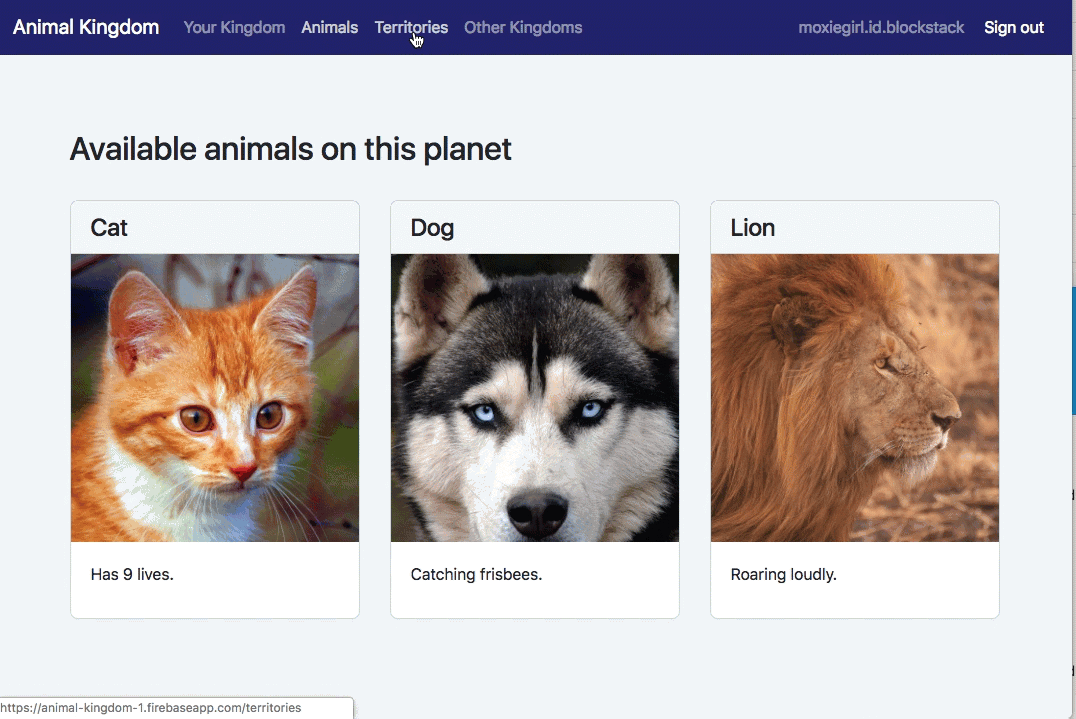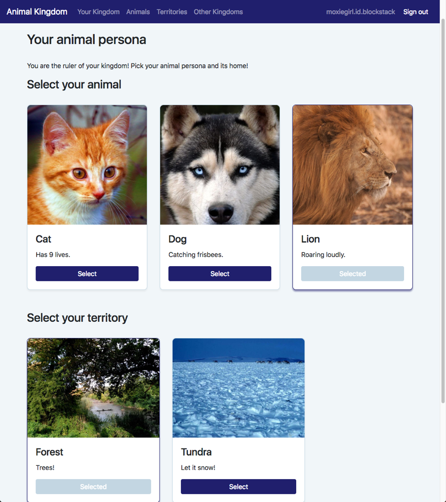 您可以使用您的Blockstack身份登录到Blockstack Animal Kingdom尝试这个应用程序的完整版本。