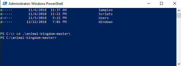 lscommand to confirm your file appears interritoriesdirectory and has the correct name.PS C:\animal-kingdom-master> ls .\public\territories\ Directory: C:\animal-kingdom-master\public\territories Mode LastWriteTime Length Name -a 2/26/2019 6:09 AM 132814 forest.jpg -a 2/26/2019 6:09 AM 128272 tundra.jpg -a 2/26/2019 6:31 AM 1087534 westeros.jpg PS C:\animal-kingdom-master> - Open the