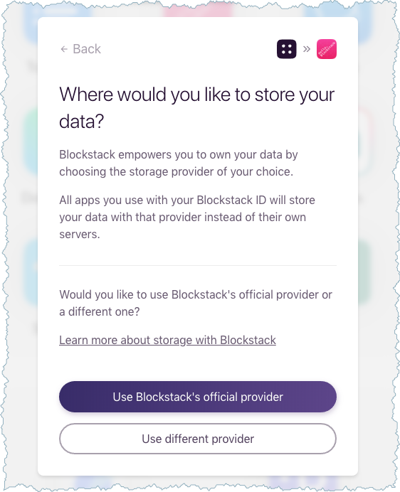If you want to create specific sign-up flows for your DApp, you can pass a preset Gaia storage hub URL also. For example, you might do this if you have a corporate client whose employees would all like to use your application with a company-run Gaia hub.